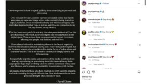ਇਸ ਮਾਮਲੇ ’ਤੇ ਪਾਇਲ ਨੇ ਬੁੱਧਵਾਰ, 17 ਦਸੰਬਰ ਨੂੰ ਇੱਕ ਲੰਮਾ ਬਿਆਨ ਜਾਰੀ ਕਰਦਿਆਂ ਸਾਫ਼ ਕੀਤਾ ਕਿ ਵਾਇਰਲ ਵੀਡੀਓ ਵਿੱਚ ਦਿਖ ਰਹੀ ਔਰਤ ਉਹ ਨਹੀਂ ਹੈ। ਉਨ੍ਹਾਂ ਕਿਹਾ ਕਿ ਇਸ ਵੀਡੀਓ ਦਾ ਉਨ੍ਹਾਂ ਦੀ ਜ਼ਿੰਦਗੀ, ਪਸੰਦ ਜਾਂ ਪਛਾਣ ਨਾਲ ਕੋਈ ਲੈਣਾ-ਦੇਣਾ ਨਹੀਂ ਹੈ ਅਤੇ ਉਨ੍ਹਾਂ ਦੇ ਨਾਮ ਅਤੇ ਤਸਵੀਰ ਦੇ ਗਲਤ ਇਸਤੇਮਾਲ ਖ਼ਿਲਾਫ਼ ਕਾਨੂੰਨੀ ਕਾਰਵਾਈ ਕੀਤੀ ਜਾ ਰਹੀ ਹੈ। ਪਾਇਲ ਨੇ ਆਪਣੇ ਬਿਆਨ ਵਿੱਚ ਕਿਹਾ ਕਿ ਆਮ ਤੌਰ ’ਤੇ ਉਹ ਨਕਾਰਾਤਮਕਤਾ ’ਤੇ ਚੁੱਪ ਰਹਿਣ ’ਚ ਵਿਸ਼ਵਾਸ ਕਰਦੀ ਹੈ, ਪਰ ਇਹ ਮਾਮਲਾ ਸਪਸ਼ਟਤਾ ਅਤੇ ਆਵਾਜ਼ ਉਠਾਉਣ ਦੀ ਮੰਗ ਕਰਦਾ ਹੈ। ਉਨ੍ਹਾਂ ਨੇ ਜ਼ੋਰ ਦੇ ਕੇ ਕਿਹਾ ਕਿ ਇਸ ਤਰ੍ਹਾਂ ਦਾ ਕੰਟੈਂਟ ਹਾਨੀ-ਰਹਿਤ ਨਹੀਂ, ਸਗੋਂ ਬਹੁਤ ਨੁਕਸਾਉਣ ਪਹੁੰਚਾਉਣ ਵਾਲਾ ਹੈ, ਜੋ ਕਈ ਔਰਤਾਂ ਦੀ ਅਕਸ ਨੂੰ ਨੁਕਸਾਨ ਪਹੁੰਚਾਉਂਦਾ ਹੈ।